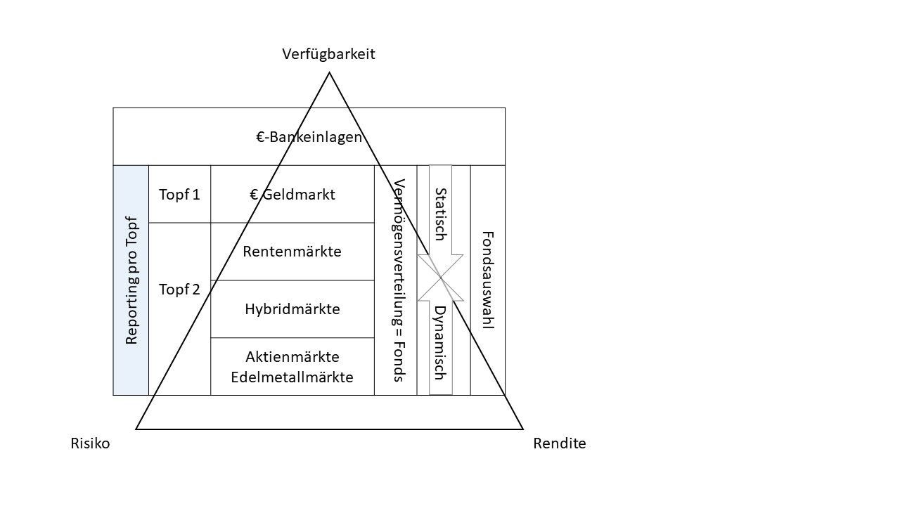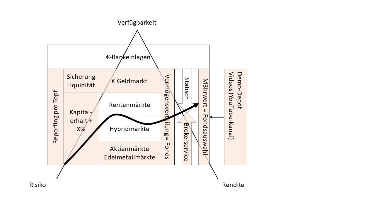 - Es muss also eine Aufteilung der Geldanlage innerhalb des M3 erfolgen, z. B. in Anlagetopf 1 und Anlagetopf 2.